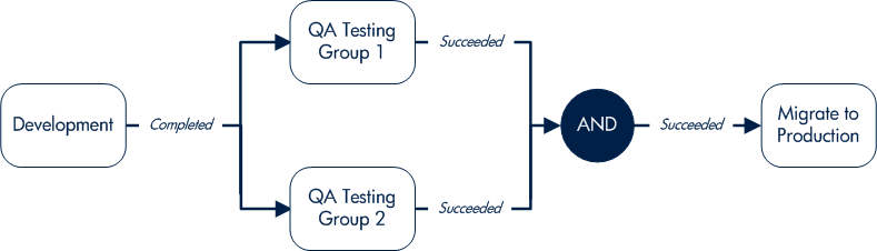 Condition workflow steps are logic steps used for complex workflow processing, such as allowing the workflow to proceed only after each workflow step is completed. The condition workflow steps include the following: