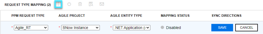 - The Agile entity -> New PPM request sync direction is enabled for the mapping. For details, see Map PPM request types to ServiceNow entity types.