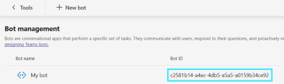 - Use the Microsoft Teams Developer Portal to create an app and add a Bot feature to the app. For details, see the Microsoft Learn Documentation.