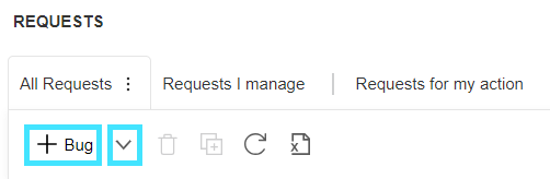 . The UI string on the button may vary depending on the request type last used. - To use another request type, click the More button