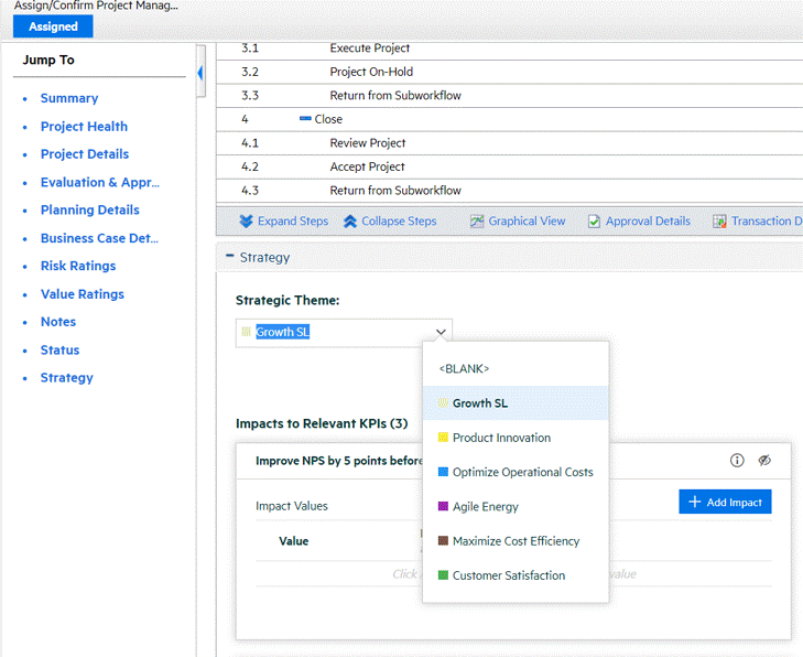 For details about adding and tracking KPI impacts, see Project Management User Guide > Forecasting Project Contributions to KPIs for example.