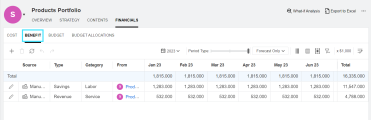 Action Description Edit benefit values Update the numbers in the Forecast or Actual cells.