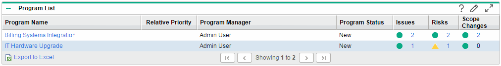 The Program List portlet provides a high-level summary of the details for all programs in your system. It displays such general information as program priority, status and associated issues.