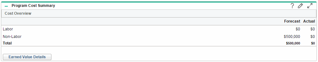 Note: Financial Management must be enabled and financial summaries must be active in order for this portlet to display data. If a project's financial summary is not active, cost information from that project's work plan is used.